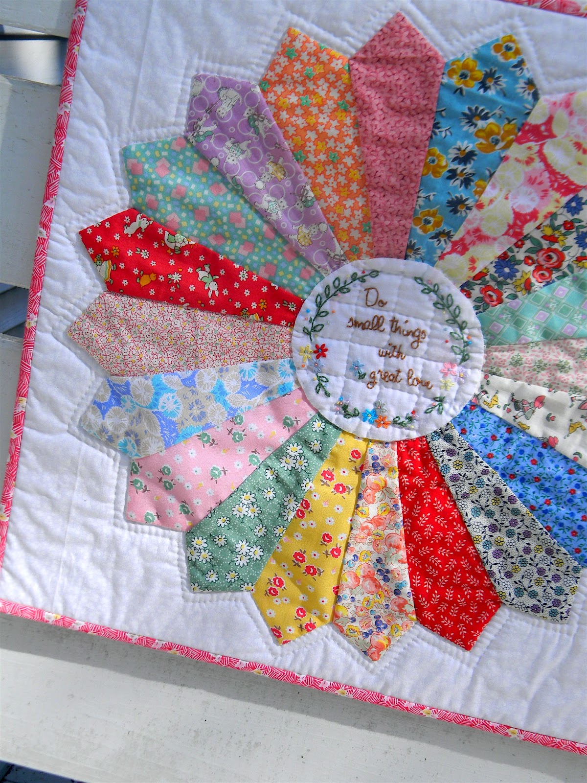 I just love little projects like this...embroidery and hand-quilting in tiny stitches. Pure bliss.